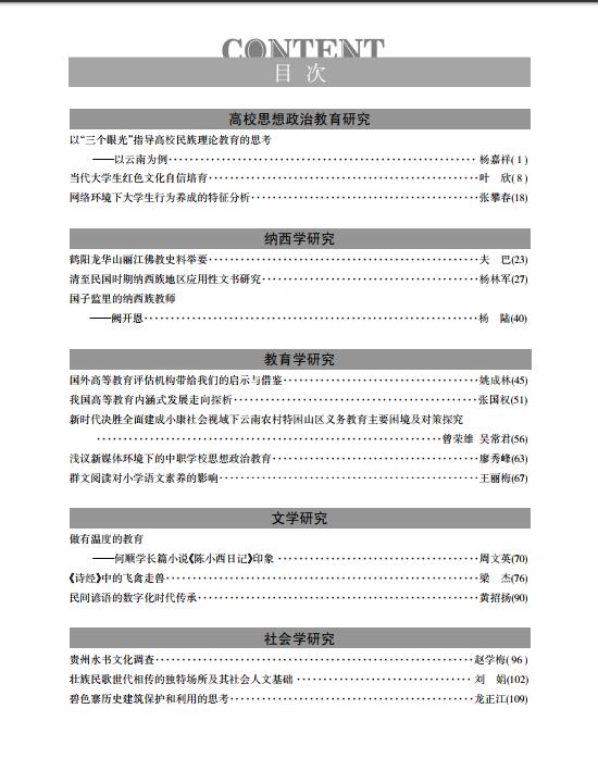 《丽江师范高等专科学校学报》2018年第三期目录